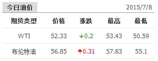 2015年7月8日国际原油价格表