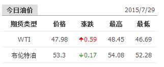 2015年7月29日国际原油价格表