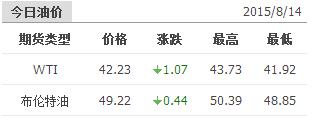 2015年8月14日国际原油价格表